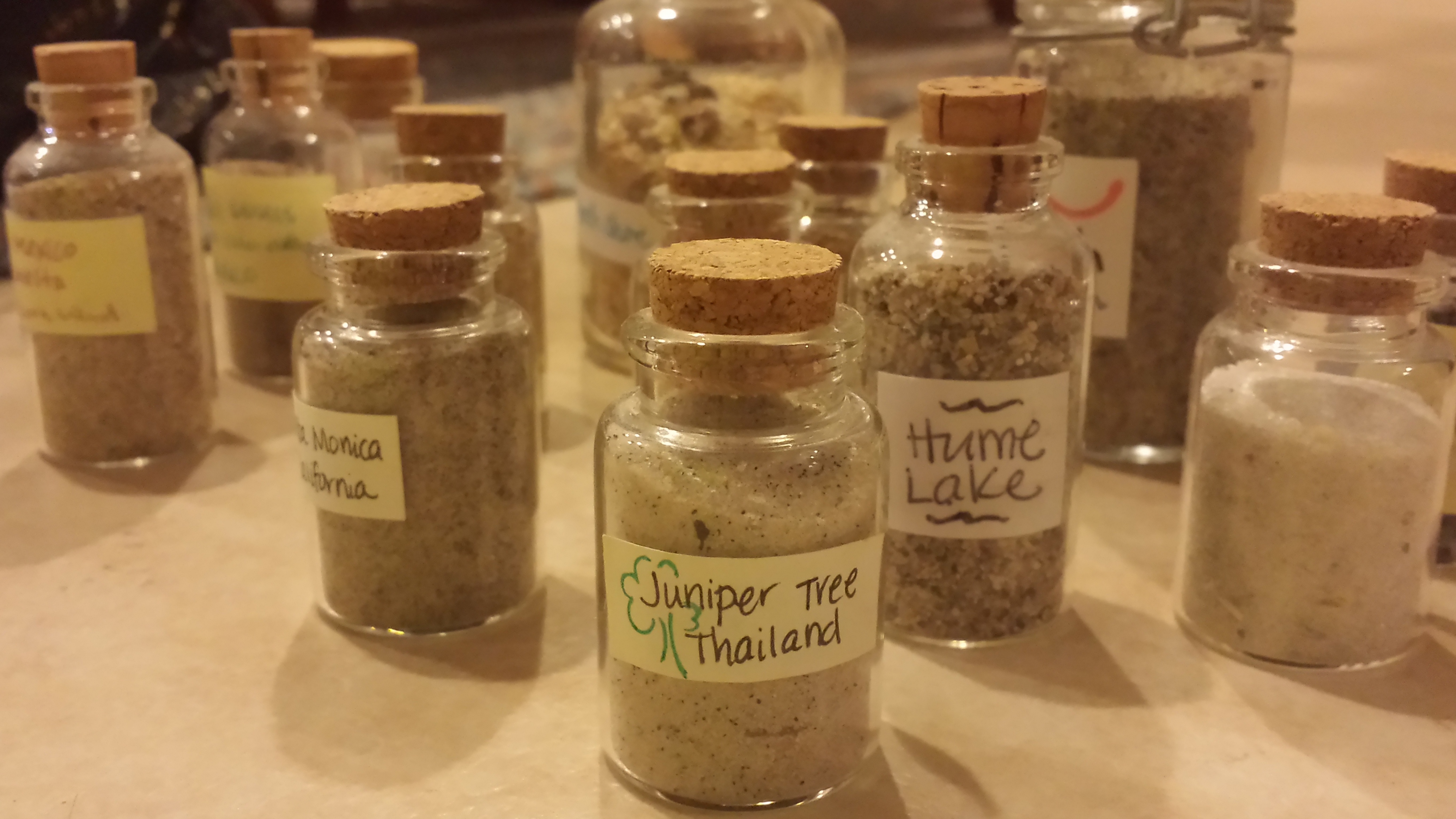 When my bottles are all stacked together like delegates at the UN, it’s beautiful to see the differences. Some are course, others fine; some contain odd shell fragments, others are uniform; some are dark, others light. If I were to mix them all together, they would lose their distinctiveness, so I choose to keep them in separate bottles, but grouped together for interest and comparison.