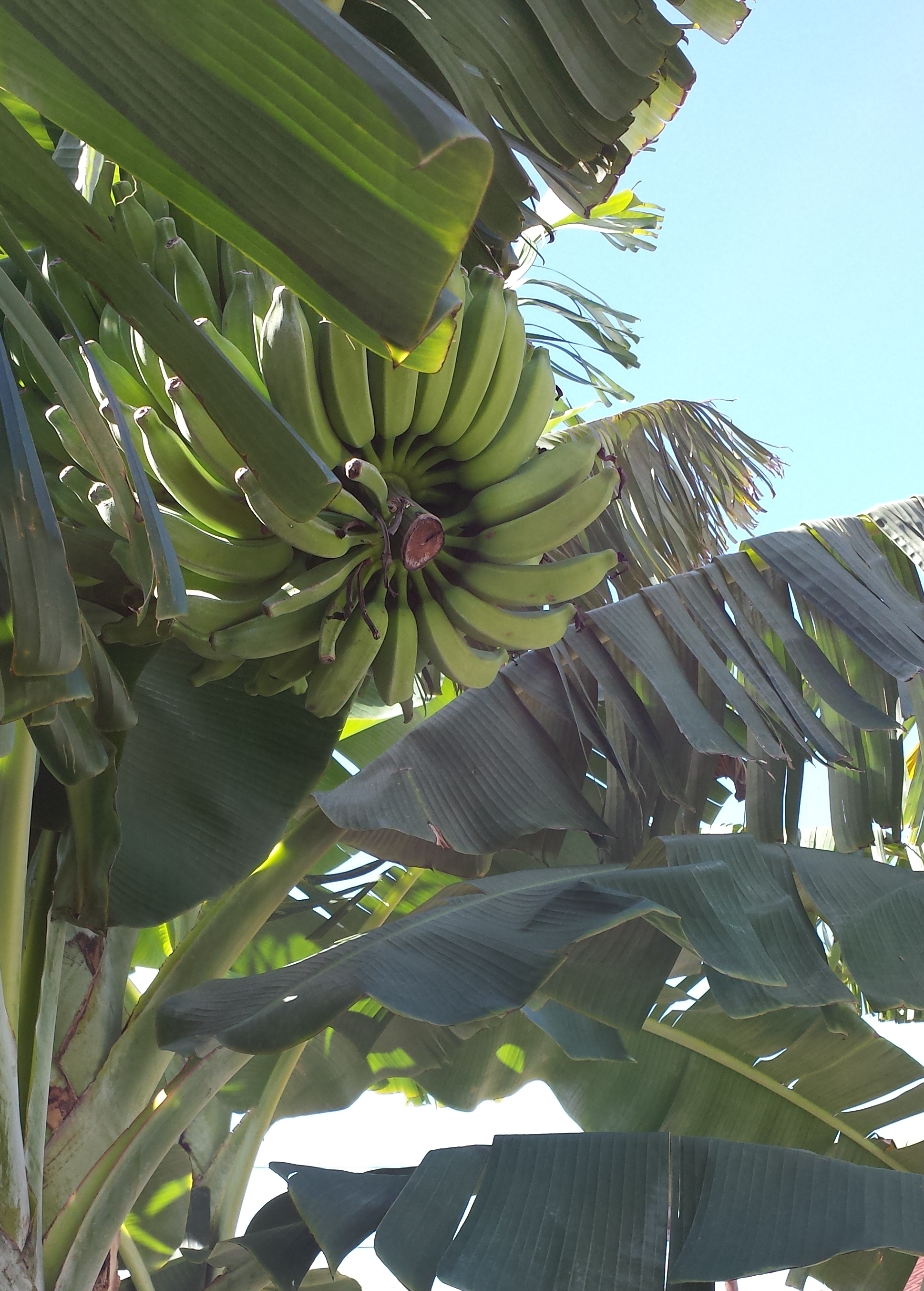 I think that’s the same cluster of bananas that emerged from it’s flower’s protective covering three months ago. The baby bananas have grown in that time but their slow process makes growth almost imperceptible. In contrast, a single guava tree branch seems to yield two small harvests a week of luscious strawberry guavas.